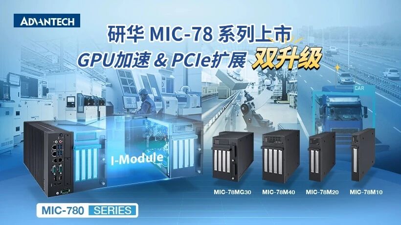 研华近期发布面向MIC‑780模组化工业计算机的全新扩展模块,包括MIC‑78MG30 GPU扩展模块以及MIC‑78M系列PCIe扩展模块(MIC‑78M20/20‑01,MIC‑78M10,MIC‑78M40‑01)。旨在为工业边缘AI应用提供强大的计算性能与高度灵活的 I/O 扩展能力,全面满足严苛工业场景下的高性能运算与多设备扩展需求。